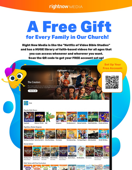 We desire to resource your family. As our gift to you, our church has access to an extensive, video library called RightNow Media! It’s like the "Netflix of Video Bible Studies" and has a HUGE library of faith-based videos for all ages that you can access whenever and wherever you want.